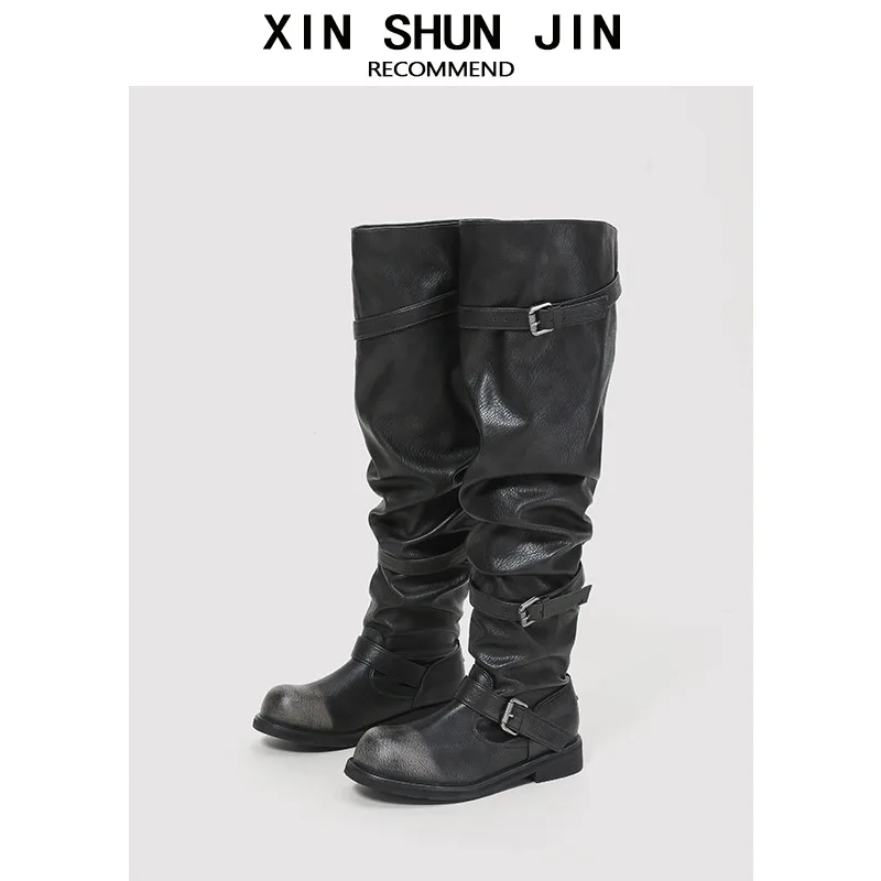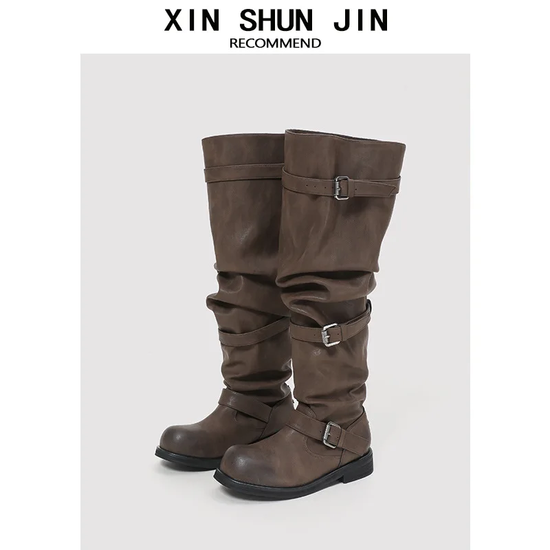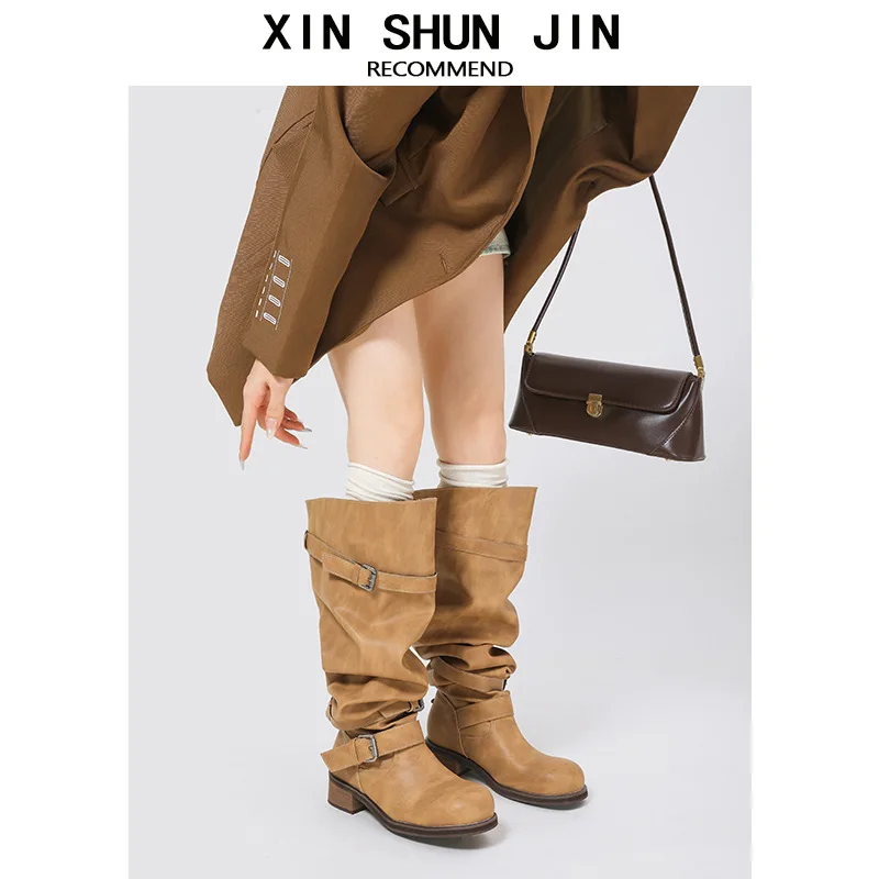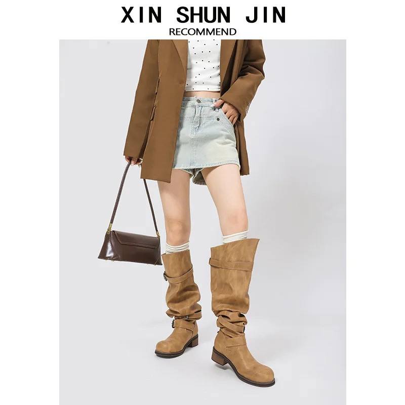 Wholesale High-quality Winter Belt Buckles, Stacked Boots, Thick Heels, Long Boots, Workwear, Women's Large Boots